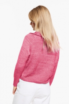 der Kragen angestrickt, nach außen umgeschlagen und angenäht. Die