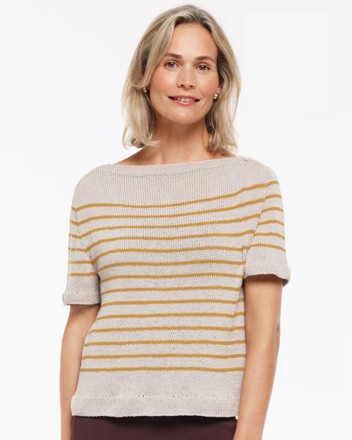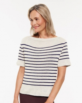 VERBRAUCH: Streifenkurzarmshirt: 250 (250) 300 (350) 400 (450) g Graubeige (Fb. 08) und50 (50) 50 (50) 50 (50) g Ockergelb (Fb. 27)