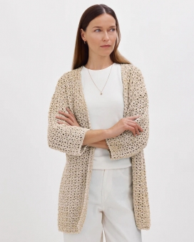 Der ISABELLA CARDIGAN wird in Einzelteilen von unten nach oben gehäkelt und anschließend