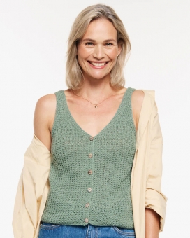 Das MARIANNA TOP + WESTE werden nahtlos von oben nach unten gestrickt.
