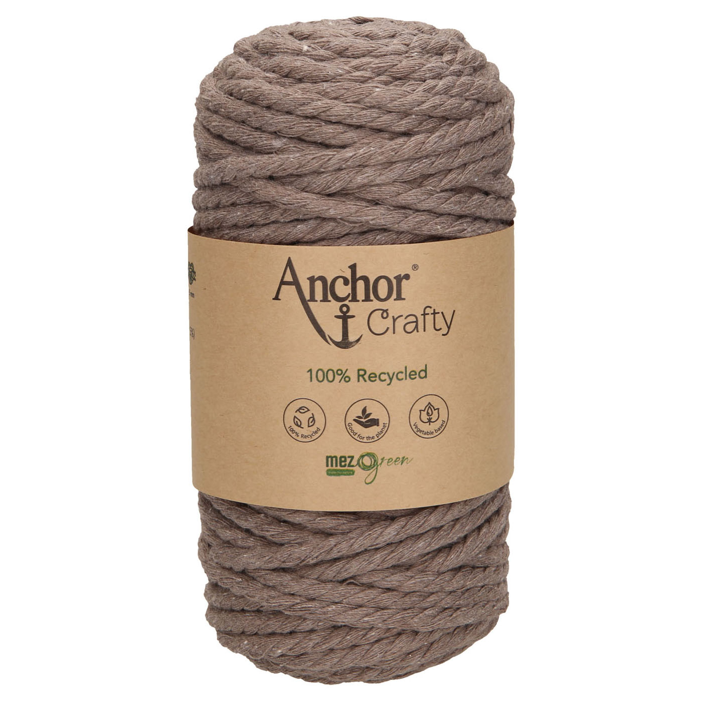 Das Kordelgarn ist ca. 5 mm dick und 3-fach gedreht. Es ist weich im Griff und angenehm zu verarbeiten, ideal für schnelle und einfache Projekte, darüber hinaus sehr gut für Anfänger geeignet. Aufgrund der Drehung kann Anchor Crafty auch leicht aufgedreht und gefranst werden, was speziell bei Macramee-Projekten einen attraktiven Federeffekt bewirkt.