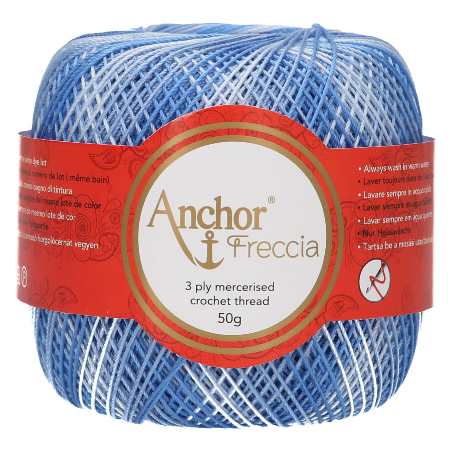 Anchor Freccia Häkelgarn aus ägyptischen Baumwolle ist das ideale Garn für Häkelpatchwork, aber auch für Filet- und Spitzenhäkelei. Es ist außerdem für andere Techniken wie Occhi und Klöppeln geeignet. Das 3fach gezwirnte, mercerisierte Baumwollgarn ist waschecht bei 40°C.