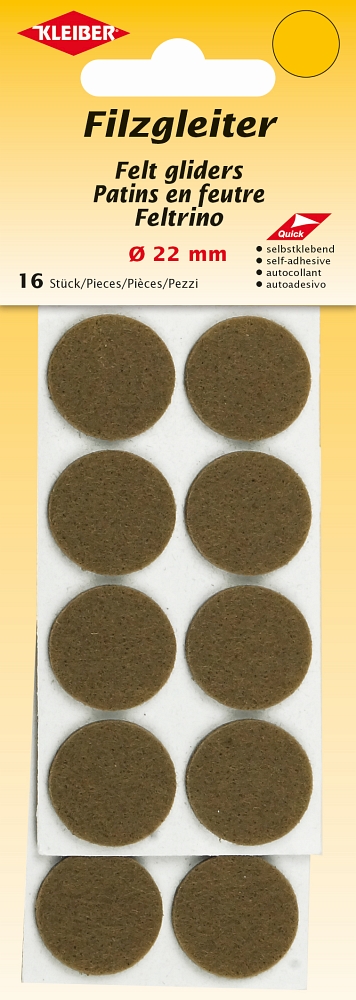 Die selbstklebenden Filzgleiter verhindern Kratzer oder Dellen an Möbeln, Fußböden, Wänden, usw.. Sie kleben auf Glas, Holz, Fließen, Möbeln, Metall, Keramik, Tapeten, Wänden. Einfach Folie auf der Rückseite abziehen und ankleben.