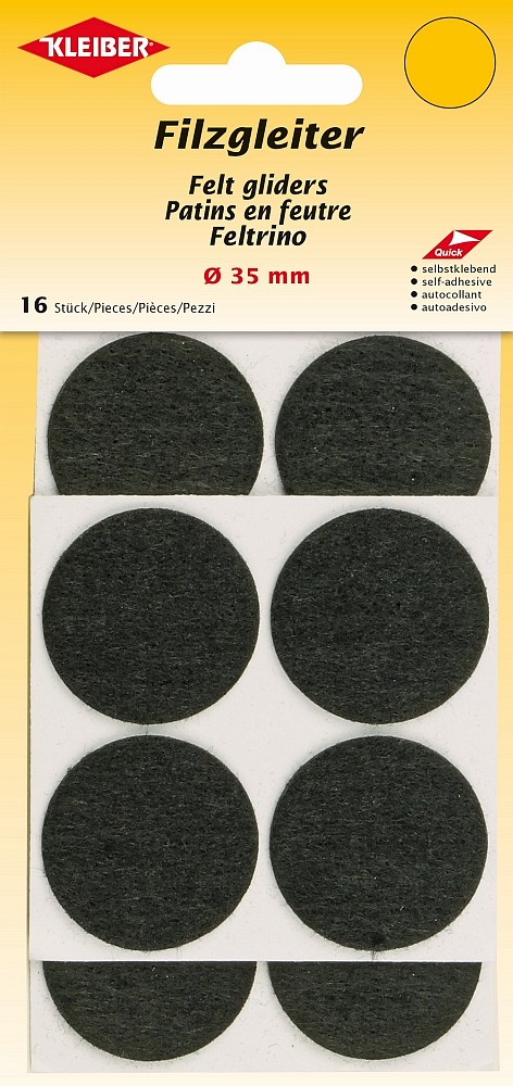 Die selbstklebenden Filzgleiter verhindern Kratzer oder Dellen an Möbeln, Fußböden, Wänden, usw.. Sie kleben auf Glas, Holz, Fließen, Möbeln, Metall, Keramik, Tapeten, Wänden. Einfach Folie auf der Rückseite abziehen und ankleben.