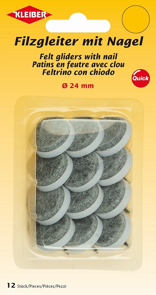 Hochwertiger Filzgleiter mit integriertem Nagel zum Einschlagen. Verhindern Kratzer oder Dellen an Möbeln, Fußböden, Wänden, usw.