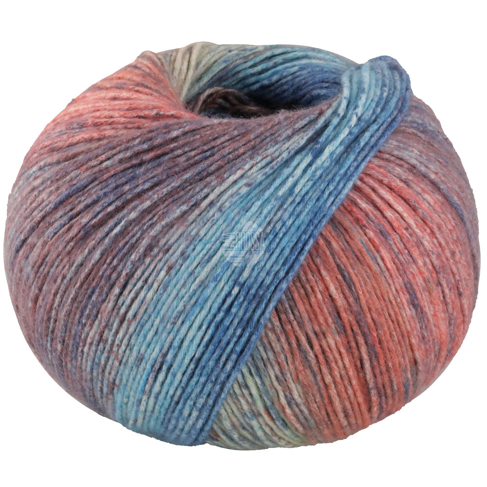 Dieses besonders weiche Bio-Baumwollgarn hat einen spannenden Streifenverlauf, der direkt beim Stricken aus dem Knäuel entsteht. Es ist hautfreundlich, angenehm leicht und ideal für luftige Kleidungsstücke und Accessoires.
