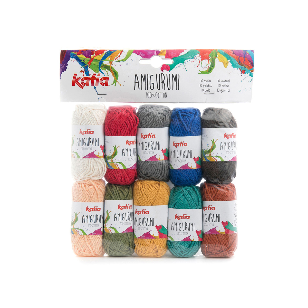 Eine Packung mit 10 Knäulen (10g je Knäuel) aus 100% Baumwolle in verschiedenen Farben, ideal für Amigurumis. Mit Amigurumi 100% lassen sich aus einem Paket ganz einfach verschiedene, abwechslungsreiche Projekte arbeiten. Aus diesem Baumwollgarn entstehen auch schöne bunte Stricktücher und tolle gehäkelte Dekoideen.