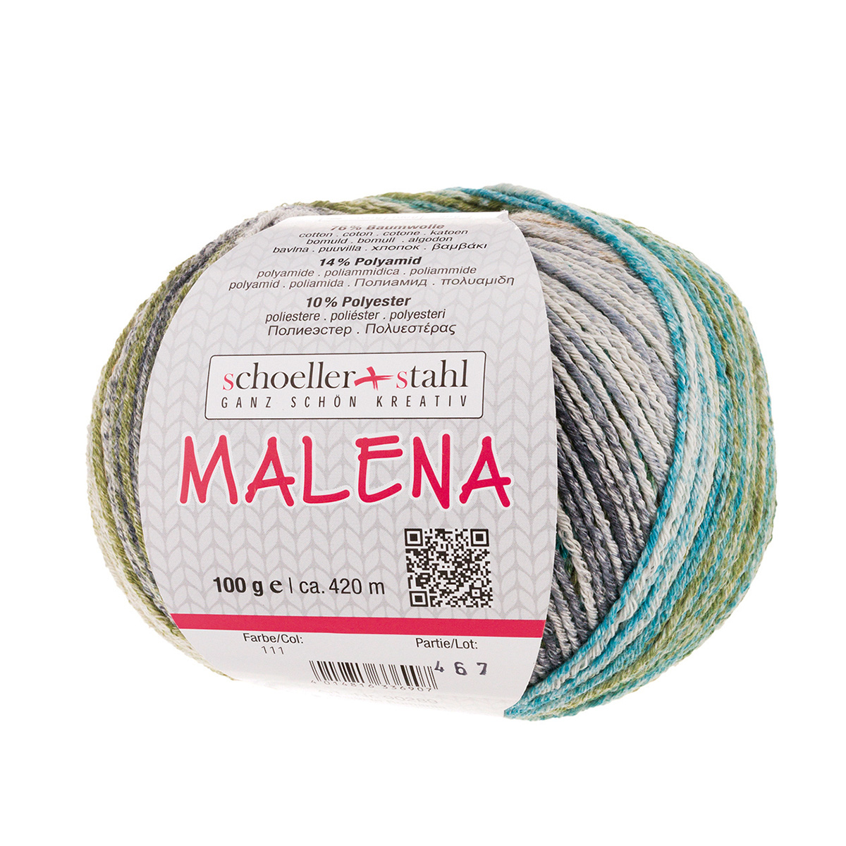 Aufmachung: Rundknäuel, Lauflänge ca. 420m / 100g-Knäuel
