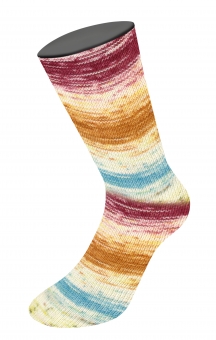 Meilenweit 100 Dusk Merino Lana Grossa 6202 Lachsorange/Ecru/Erika-/Dunkelrot/Zartgelb/Karamell/Nougat