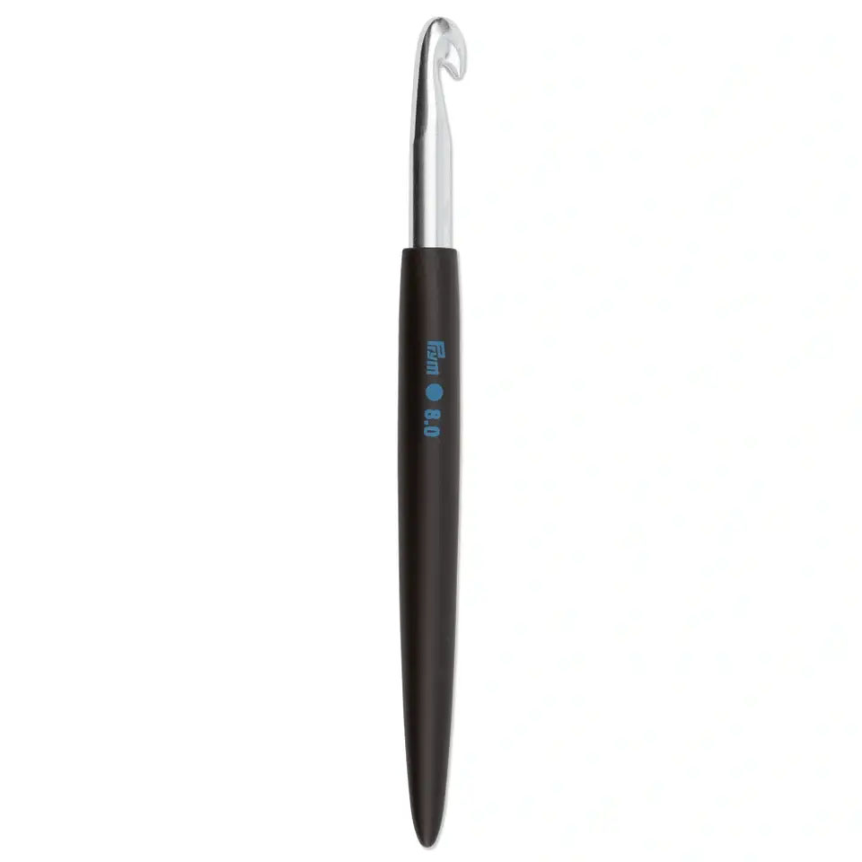 Mit dieser hochwertigen Wollhäkelnadel macht das Häkeln von Mützen, Schals, Taschen, Beuteln, Decken oder Accessoires einfach Spaß! Der weiche und komfortable Softgriff liegt angenehm und rutschfest in der Hand. Das Griffende läuft am Ende konisch zu und passt sich so der Handhaltung beim Arbeiten an. Der silberfarbene Haken ist völlig glatt und gratfrei. Gleichzeitig erlaubt die Fadenrinne eine absolut gleichmäßige Fadenführung. Darüber hinaus ist die Nadelstärke, für eine schnelle Erkennbarkeit, farblich codiert auf dem anthrazitfarbenen Griff aufgebracht. Erhältlich in verschiedenen Größen und Nadelstärken!